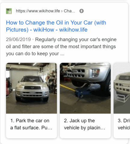 How To Schema *NEW* – This is a great option if your website is providing step-by-step instructions on how to achieve something. The Google search result can, for example, show each step in your process with an accompanying image in a carousel style. This mainly works for mobile searches, and really makes your search result stand out above others.