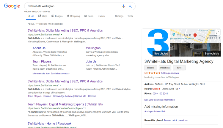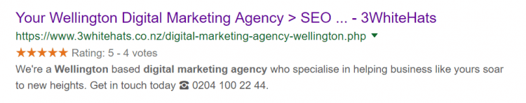 Update: Alas, it is no longer possible to display stars for your own business since September 2019. However, if you’ve pages that talk about a third party for example a review of 3WhiteHats on a customer website or a reviews site like Trust Pilot – rating markup for your business may still show here